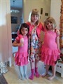 Tre söta tjejer som har varit med sin mormor Rose-Marie och handlat klänningar hos Tjetex (bilden tillhör Rose-Marie Persson, Skurup)