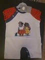 Finfin Lasse Åberg Body med prickig ärm och korta ben, text på ryggen
